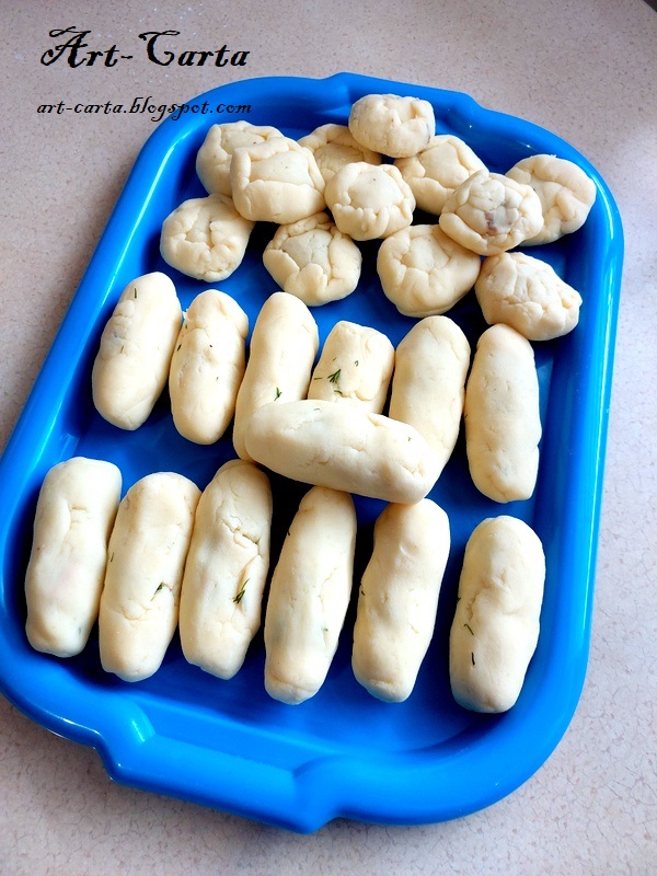 Podzielić na części, nadziewać wybranym farszem i kształtować krokiety.